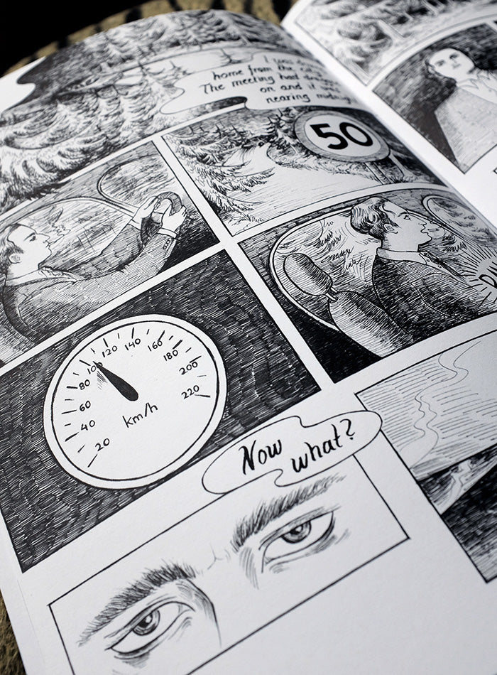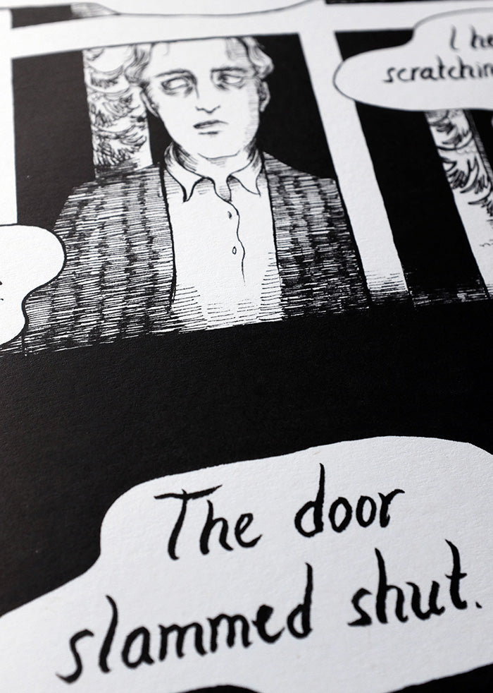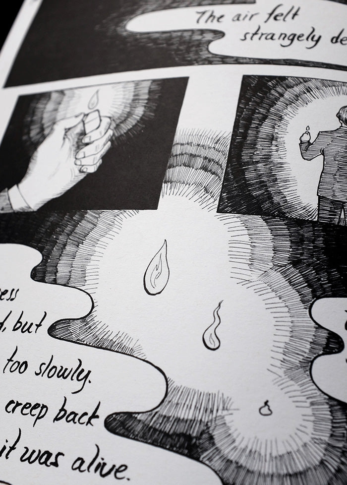 The Dark is a 16 page comic professionally printed in black and white on velvety matte recycled paper.
